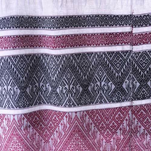 | คำอธิบาย : ผ้าฝ้าย ลายพญานาค ต่อหัวด้วยลายขิด จากประเทศสาธารณรัฐประชาธิปไตยประชาชนลาว |