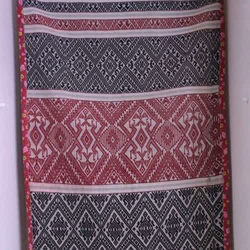 | คำอธิบาย : ผ้าฝ้าย ลายพญานาค ต่อหัวด้วยลายขิด จากประเทศสาธารณรัฐประชาธิปไตยประชาชนลาว |