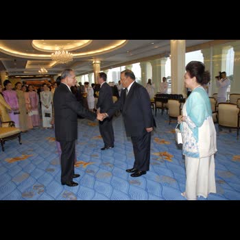 | คำอธิบาย : ถวายพระกระยาหารค่ำแด่พระประมุข และพระราชวงศ์ต่างประเทศ ณ พระที่นั่งบรมราชสถิตยมโหฬาร เมื่อวันที่ 13 มิถุนายน 2549 |