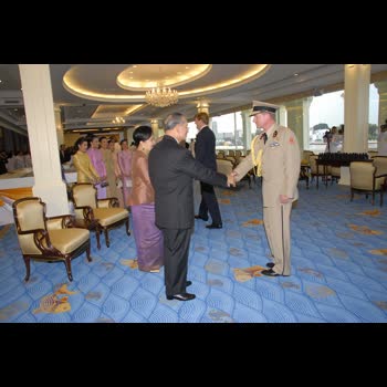 | คำอธิบาย : ถวายพระกระยาหารค่ำแด่พระประมุข และพระราชวงศ์ต่างประเทศ ณ พระที่นั่งบรมราชสถิตยมโหฬาร เมื่อวันที่ 13 มิถุนายน 2549 |