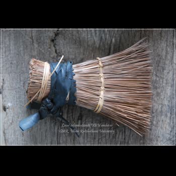 คำอธิบาย : ธุงใยแมงมุม เป็นสัญลักษณ์ของความเชื่อเกี่ยวกับโชคลางของชาวอีสาน และประเทศอื่น ๆ ในดินแดนอุษาคเนย์ ซึ่งมีความเชื่อพื้นฐานจากวัฒนธรรมของผี พราหมณ์และพุทธ ที่หลอมรวมเป็นเอกลักษณ์อันโดดเด่นของภูมิภาค ตุงใยแมงมุม มีทั้งแบบสี่ด้านหรือหกด้าน ทำมาจากเส้นไหมหรือเส้นด้ายที่มีหลากหลายสีสันมัดกับไม้ไผ่ที่เหลาแล้ว แต่จะกำหนดขนาด มัดและม้วนจนเป็นวงรอบคล้ายใยแมงมุมที่โยงไปโยงมา การที่แมงมุมมีใยนี่เองที่ชาวบ้านใช้แทนการเชื่อมโยงวิญญาณ บุญกุศล ไปสู่ภพหลังความตายได้ โดยเป้าหมายคือสวรรค์นั่นเอง เมื่อเสร็จแล้วก็นำมาร้อยเข้าด้วยกันกลายเป็นสายเดียวกันหรือตามรูปแบบต่างๆ ที่ออกแบบให้สวยงาม แล้วนำไปตกแต่งมณฑลพิธีหรือพื้นที่ศักดิ์สิทธิ์ |