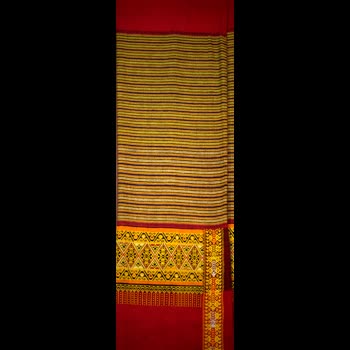 | คำอธิบาย : ผ้าทอตีนจกเมืองลอง จังหวัดแพร่ ลายซิ่นตีนจกเมืองลอง โบราณ ลายโคมช่อน้อยตุงชัย |