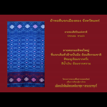 | คำสำคัญ : ทอผ้า, หัตถศิลป์, ลายซิ่นตีนจก, พวนหาดเสี้ยว, งานบุญ, ภูมิปัญญาไทย, ขนบธรรมเนียม, ประเพณี, เมืองลอง, แพร่, ลายซิ่นตีนจกเมืองลองโบราณ |