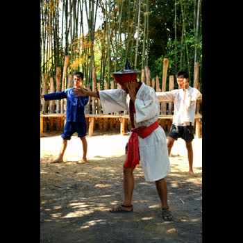 | คำสำคัญ : ฟ้อนเจิง, ย่ำขุ่ม, ท่ามือ, ท่ามือเปล่าประกอบเท้า, ท่าประกอบอาวุธ, เจิงแพร่, ไก่ตีปีกแม่ฮ้อยเดือยคำ, เมืองลอง, แพร่, เจิง, ล้านนา, ภาคเหนือ, ศิลปะป้องกันตัว, กลองไชยมงคล, กลองยาว, ศิลปะนาฏกรรม, ล้านนาไทเก๊ก |