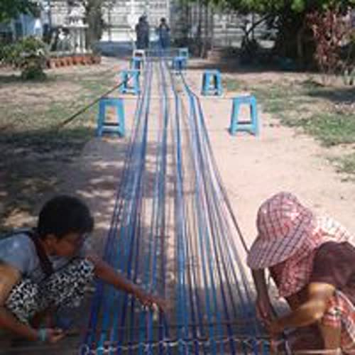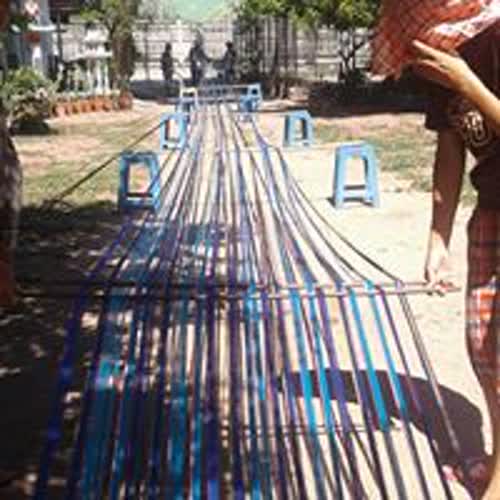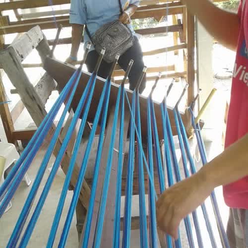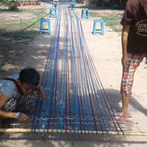 การพับกระดานหูก ผ้าทอมือคุณยายหง่วนบ้านมาบหม้อ