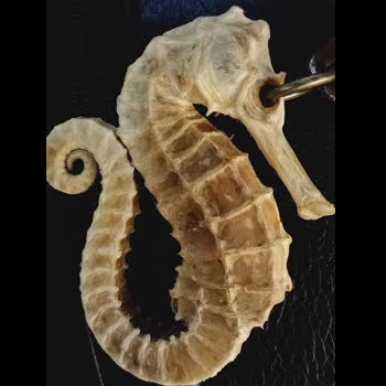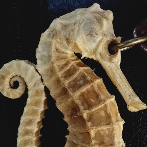 | คำอธิบาย : ม้าน้ำ (Sea horse)เป็นปลากระดูกแข็งที่อาศัยอยู่ในทะเลจำพวกหนึ่ง จัดอยู่ในวงศ์ Syngnathidae.อันเป็นปลาวงศ์เดียวกับปลาจิ้มฟันจระเข้และมังกรทะเล รูปร่างลักษณะแตกต่างไปจากปลาชนิดอื่นๆ ตอนหัวคล้ายรูปม้า ตัวยาว เกล็ดหุ้มตัวเป็นแผ่น หางงอ ตัวผู้จะมีกระเปาะหน้าท้อง ตัวเมียจะไปวางไข่ใส่ในกระเปาะหน้าท้องตัวผู้ โดยตัวผู้จะฉีดน้ำเชื้อผสมกับไข่และคอยดูแลจากตำราจีนแผนโบราณ ระบุว่าม้าน้ำมีคุณสมบัติบำรุงทางเพศ ชะลอความแก่ มะเร็งเต้านม หอบหืด จนถึงตับไต |