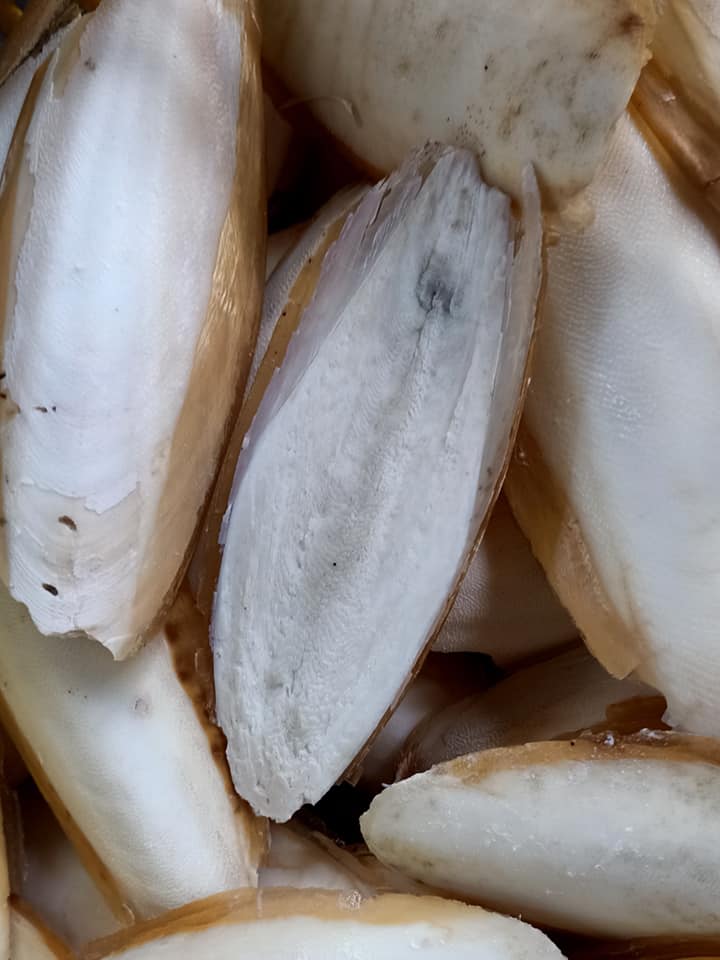 | คำอธิบาย : กระดองหมึก หรือลิ้นทะเล ช่วงมรสุม ฝนตกหนักคลื่นแรง, ลมแรง แถบทะเลฝั่งอ่าวไทย คลื่นจะซัดเอากระดองหมึกและเปลือกหอยชนิดต่างๆมาเกยฝั่งเกลื่อนไปหมดกระดองปลาหมึก สามารถนำไปขายได้ จะมีคนมารับซื้อ เราต้องล้างด้วยน้ำจืดก่อน โดยใช้แปรงขนอ่อนๆขัดให้เศษผงและทรายออกให้เกลี้ยง นำไปผึ่งลมหรือตากแดดให้แห้ง กระดองหมึกมีการซื้อขายกันหลายราคาตามขนาด คือไซด์ใหญ่ - กลาง - เล็ก กิโลละ 80 - 60 - 40 บาท นำไปรองรับเป็นแบบของกรอบพระ แหวน เป็นแคลเซี่ยมเสริมให้นกหงษ์หยก หรือนกอื่นๆ นำมาให้นกเขาใหญ่และนกเขาเล็ก จิกกินผงขาวๆ จากกระดองหมึก เพื่อให้เปลือกไข่ของมันมีความแข็งแรงเหมาะแก่การฟักไข่ ใช้ขัดก้นหม้อก้นกระทะ และป่นผสมกับเกลือแทนยาสีฟัน เป็นส่วนผสมยาแก้หอบหืด ในงานเสริมความงาม(เป็นผงสครับขัดผิว) ฯลฯปล.มีผู้รู้บางคนบอกว่า สมัยก่อนไม่มียีสต์หรือผงฟูสำเร็จรูป ในการทำขนม วางจำหน่ายเหมือนปัจจุบัน คนจีนที่ทำปาท่องโก๋ขาย จะขูดเอาผงขาวๆจากกระดองหมึก หมักและนวดลงในแป้งสาลี ที่เป็นแป้งปาท่องโก๋ ไม่ทราบเหตุผล เพราะอะไรจึงใส่ผงจากกระดองหมึกลงไป ใครทราบกรุณาบอกหน่อยนะ |