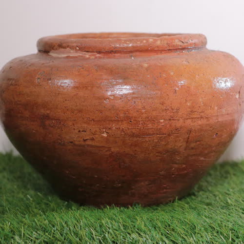 | คำอธิบาย : มีลักษณะทำจากดินเหนียว เป็นการนำดินเหนียว ดินแดง หรือดินลูกรังที่พบได้ทั่วไปนำมาปั้นขึ้นรูปและเผา 1 รอบ โอ่งจะให้สีออกมาเป็นสีออกส้มอมแดง เป็นผิวด้าน สามารถนำมาใส่น้ำหรือใช้งานอย่างอื่นได้ตามต้องการ |