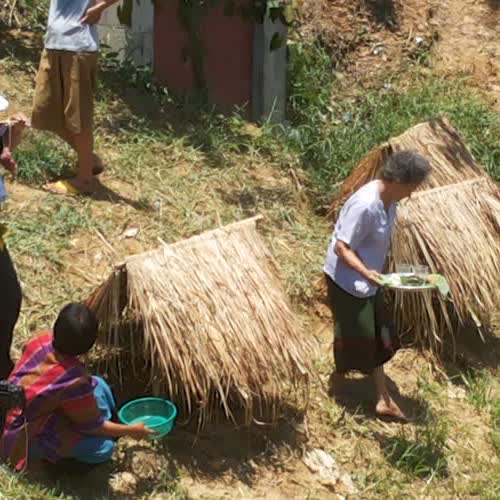 | คำอธิบาย : ประเพณีการเลี้ยงผีปู่ย่า เป็นประเพณีล้านนา ที่มักจะจัดขึ้นในช่วงเดือน 9 (เดือนมิถุนายน) ของทุกปี เพื่อทำบุญและกราบไหว้ดวงวิญญาณของบรรพบุรุษที่ล่วงลับไปแล้ว โดยการสร้างตูบ(กระท่อม) และทำพิธีเลี้ยง การทำเช่นนี้ก็เป็นจารีตประเพณี หรือพิธีกรรมตามความเชื่ออันหนึ่งของคนโบราณ |