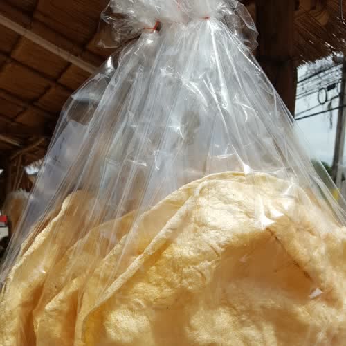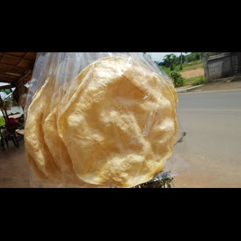 | คำอธิบาย : ข้าวเกรียบว่าว ภาคเหนือเรียก ข้าวควบ เป็นภูมิปัญญาไทยในการนำข้าวเหนียวนึ่งสุกแล้วนำไปตำผสมกับน้ำอ้อยจนได้แป้งเหนียว นำมาทำเป็นแผ่นตากแห้ง แล้วนำมาปิ้งไฟ เป็นขนมพื้นบ้านที่มีมาช้านาน เวลาบิรับประทานเสียงจะดัง ควบ ๆ จึงเรียกขนมนี้ว่า ข้าวควบ |