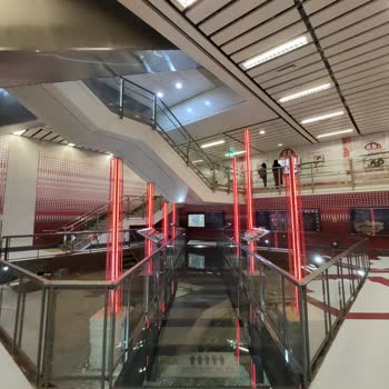 มิวเซียมใต้ดิน @ สถานีสนามไชย: สะพานพื้นกระจกบนหลุมจำลองการขุดค้นทางโบราณคดีด้านหน้าอาคารมิวเซียมสยาม