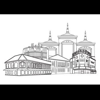 Clip art ภาพวาดลายเส้นกลุ่มอาคารในย่านสามยอด-พาหุรัด-วังบูรพา
