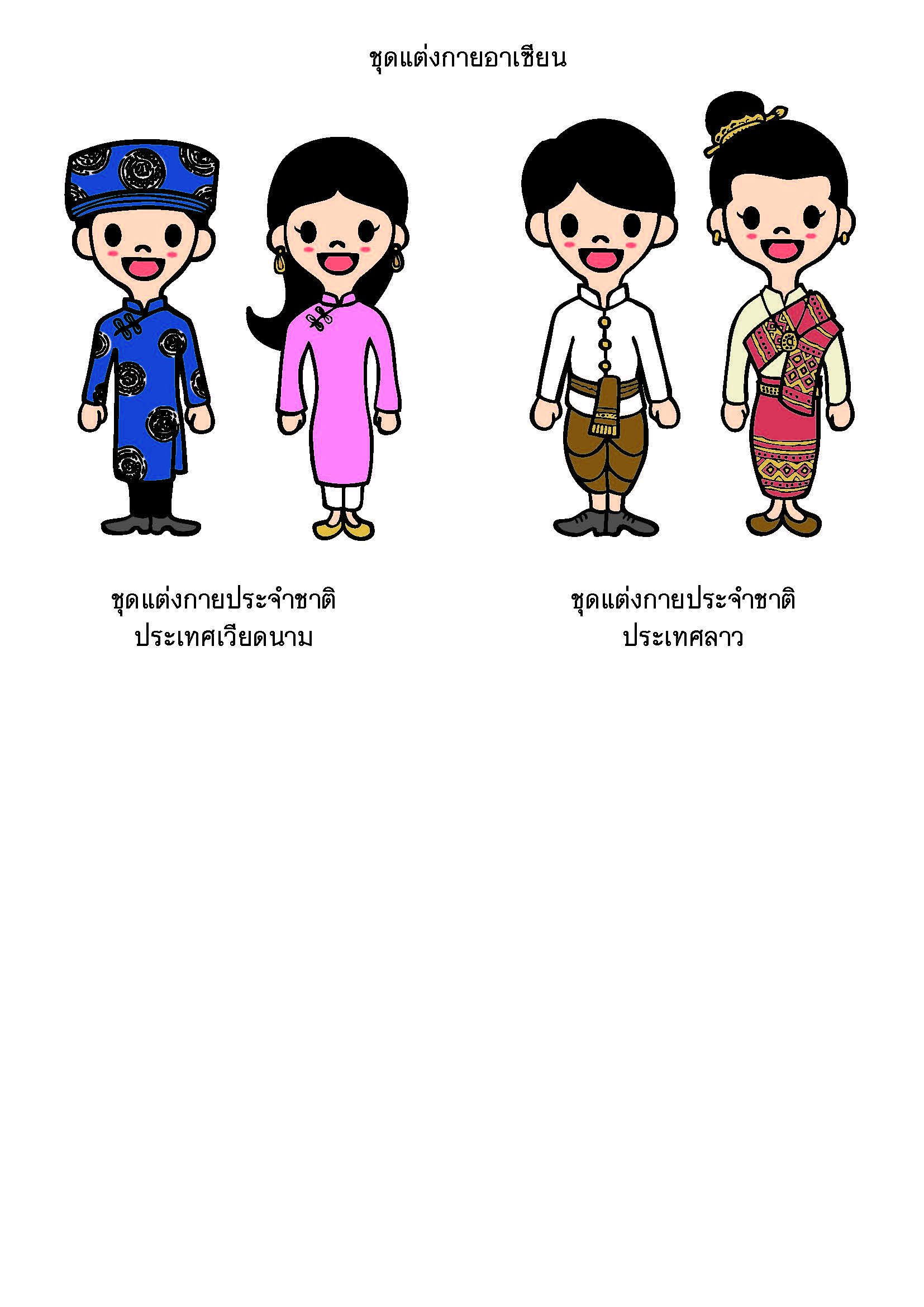 Clip art การ์ตูนแสดงเครื่องแต่งกายประเทศต่างๆ ในอาเซียน ได้รับใบอนุญาตภายใต้