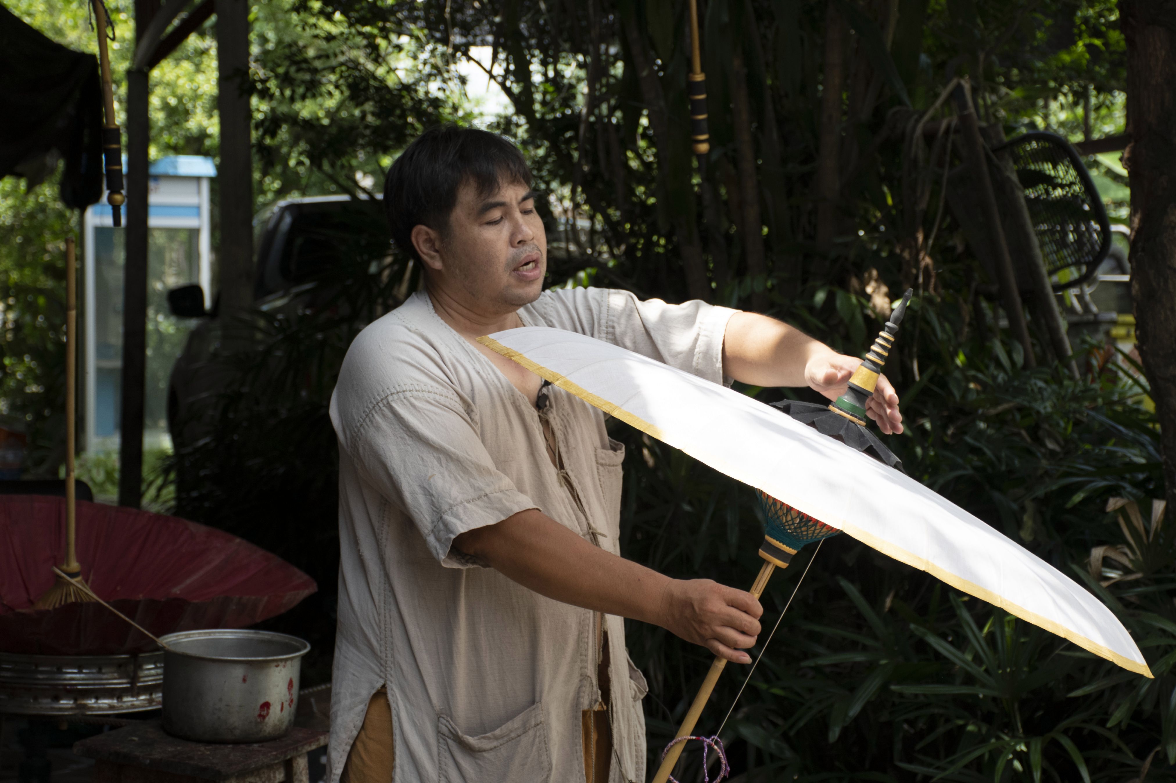 การทำร่มโบราณ บ้านมะกายยอน ได้รับใบอนุญาตภายใต้ ให้เผยแพร่-โดยต้องระบุที่มาแต่ห้ามดัดแปลงและห้ามใช้เพื่อการค้า 3.0 Thailand.