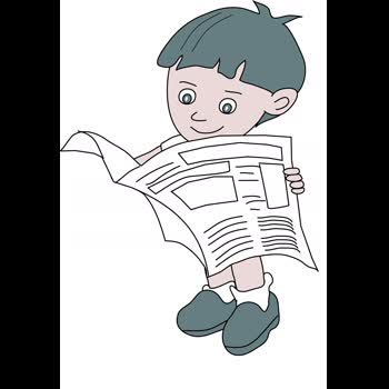 Clipart เด็กชายยืนอ่านหนังสือพิมพ์ ได้รับใบอนุญาตภายใต้