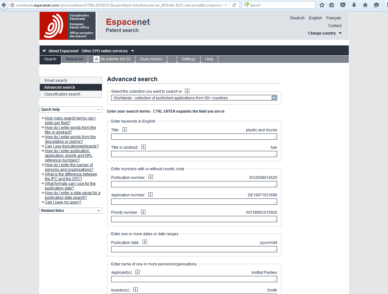 Espacenet ฐานข้อมูลสิทธิบัตรฟรี ได้รับใบอนุญาตภายใต้