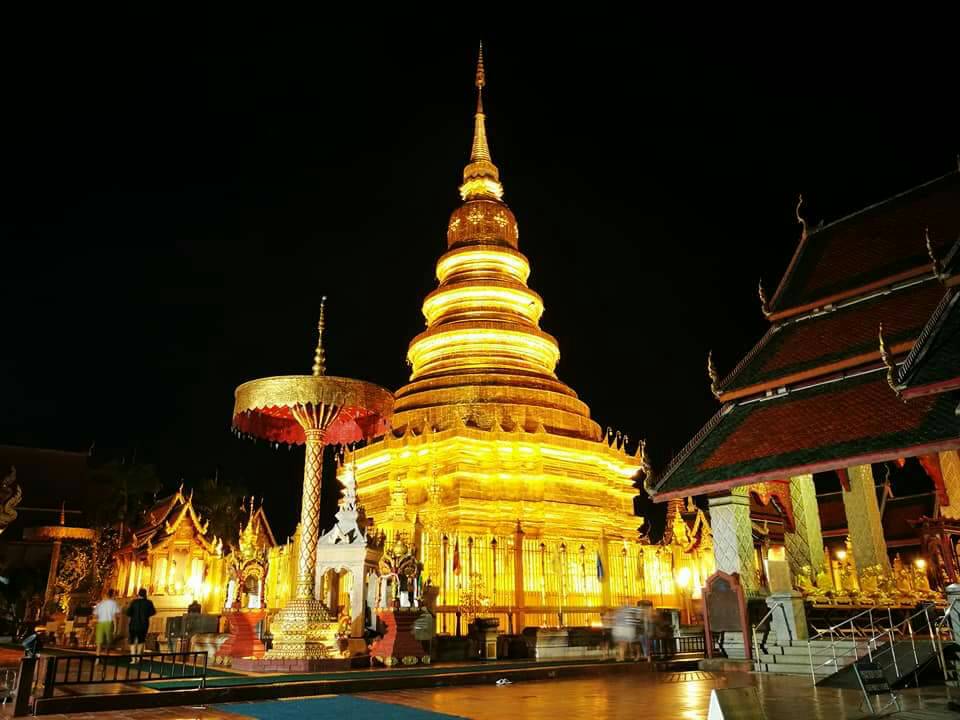 วัดพระธาตุหริภุญชัยวรมหาวิหาร ยามค่ำ ได้รับใบอนุญาตภายใต้
