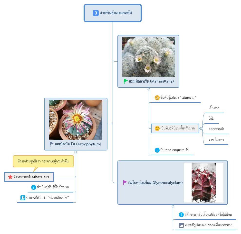 แผนที่ความคิด (Mind map) การเลี้ยงแคคตัส - สายพันธุ์ของแคคตัส ได้รับใบอนุญาตภายใต้