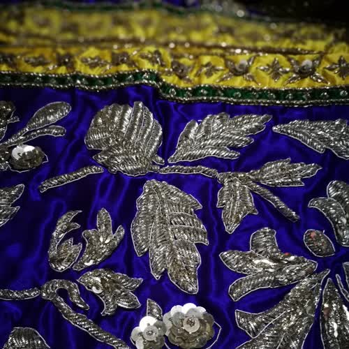 | คำอธิบาย : ผ้าห่มนางนารายณ์ สีม่วงเป็นลายพิเศษสมัย ร.๕ ใช้สำหรับนางนารายณ์ในโขนตอนนิ้วเพชร นางนารายณ์ปราบนนทุกข์ |