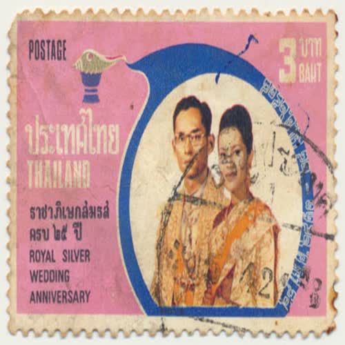 แสตมป์ชุด ราชาภิเษกสมรส ครบ ๒๕ ปี ได้รับใบอนุญาตภายใต้ ให้เผยแพร่-โดยต้องระบุที่มาแต่ห้ามดัดแปลงและห้ามใช้เพื่อการค้า 3.0 Thailand.