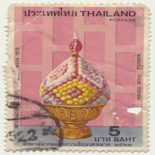พุ่มดอกไม้ แสตมป์ชุด สัปดาห์สากลแห่งการเขียนจดหมาย ๒๕๒๒ ได้รับใบอนุญาตภายใต้ ให้เผยแพร่-โดยต้องระบุที่มาแต่ห้ามดัดแปลงและห้ามใช้เพื่อการค้า 3.0 Thailand.