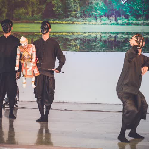 คำอธิบาย : การแสดงหุ่นละครเล็ก คนเชิดต้องมีพื้นฐานจากโขนด้วย |