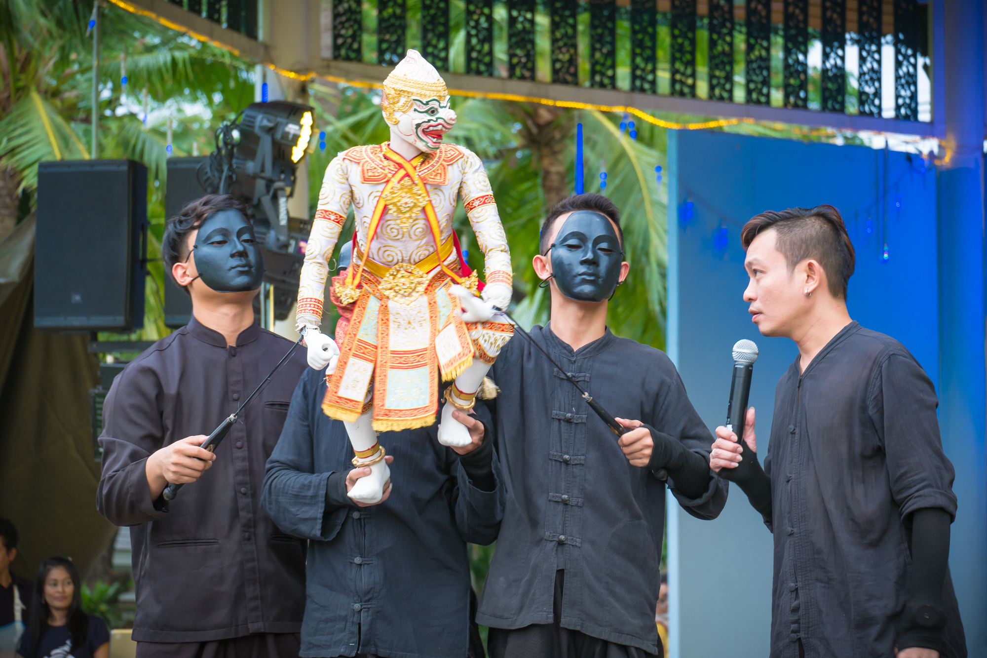 คำอธิบาย : การโต้ตอบระหว่างพิธีกรและหุ่น |