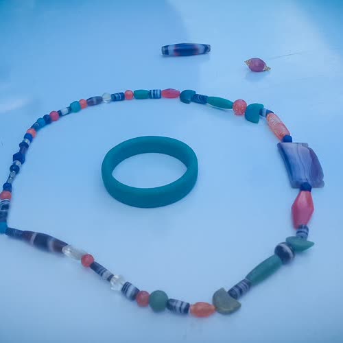 | คำอธิบาย : ลูกปัดโบราณ ที่ถูกขุดค้นพบในท้องนา บริเวณ ยางช้าย อ.โพธิ์ทอง จ.อ่างทอง สันนิษฐานกันว่าเป็นของสมัยทวารวดี |