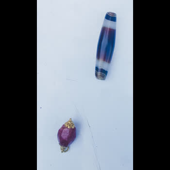 | คำอธิบาย : ลูกปัดโบราณ ที่ถูกขุดค้นพบในท้องนา บริเวณ ยางช้าย อ.โพธิ์ทอง จ.อ่างทอง สันนิษฐานกันว่าเป็นของสมัยทวารวดี |