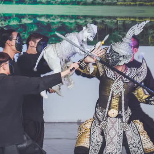 | ชื่อเรื่อง : การแสดงคนเชิดโขนปะทะคนเชิดหุ่น |