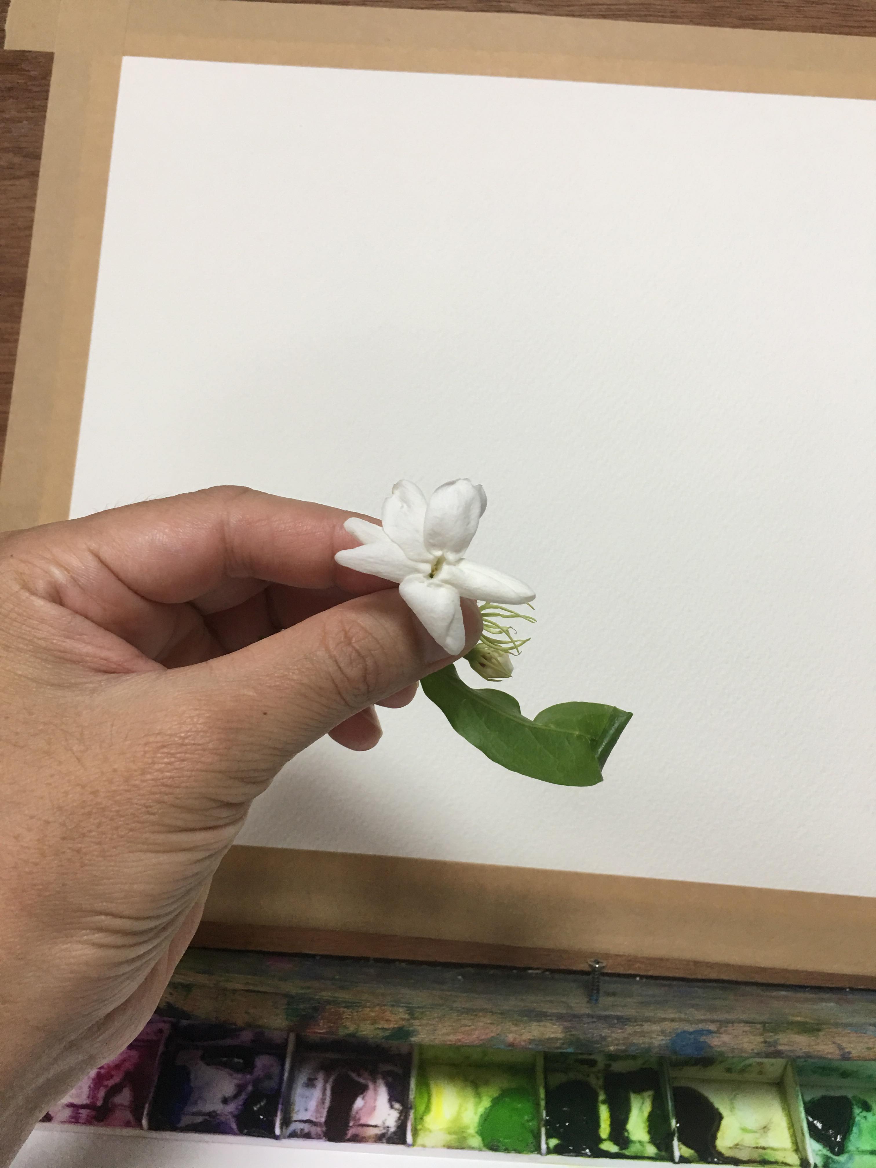 "การวาดภาพสีน้ำดอกมะลิลา".