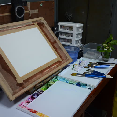 | คำสำคัญ : การวาดภาพสีน้ำ, การเตรียมพื้นที่วาดภาพสีน้ำ, การเตรียมพื้นที่สำหรับระบายสีน้ำ, กระดาษวาดเขียน |