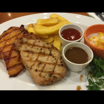 | คำสำคัญ : สเต๊กหมูพริกไทยดำ, steak, สเต็กหมู, สเต๊กไก่, ซอสพริกไทยดำ, อาหารนานาชาติ, สลัด |