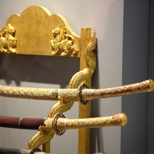 | คำอธิบาย : ดาบอาญาสิทธิ์ ของ เจ้าพระยาบดินทรเดชา (สิงห์ สิงหเสนี) ณ พระที่นั่งปัจฉิมาภิมุข ในเรื่อง โลหะกับงานประณีตศิลป์ |