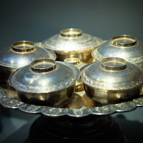 | คำอธิบาย : เครื่องโลหะนอกจากมีประโยชน์ด้านการใช้สอยแล้ว ยังเป็นเครื่องแสดงอำนาจและสถานะทางสังคมของผู้ครอบครอง ผ่านการพระราชทาน “เครื่องยศ” แก่ขุนนาง และข้าราชการ ผู้สร้างคุณประโยชน์ให้แก่บ้านเมือง ซึ่งจะแตกต่างกันไปตามยศศักดิ์ที่ได้รับ |