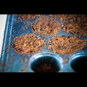 | คำอธิบาย : นำเมล็ดวางบนขุยมะพร้าวที่อยู่ในถาดเพาะ |