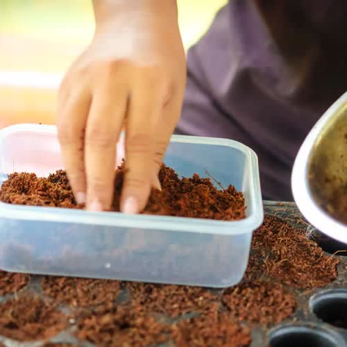 "ใช้กล่องพลาสติกแทนถาดเพาะ".