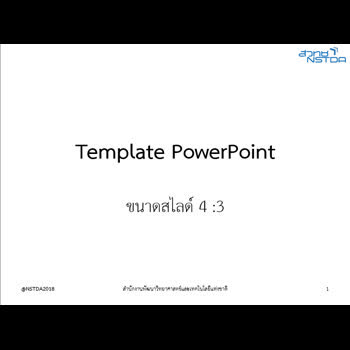 | คำอธิบาย : Template PowerPoint สำนักงานพัฒนาวิทยาศาสตร์และเทคโนโลยีแห่งชาติ (สวทช.) ขนาดสไลด์นี้ใช้ขนาด 4:3 และใช้ฟอนต์ TH SarabunNew เป็นฟอนต์หลัก |