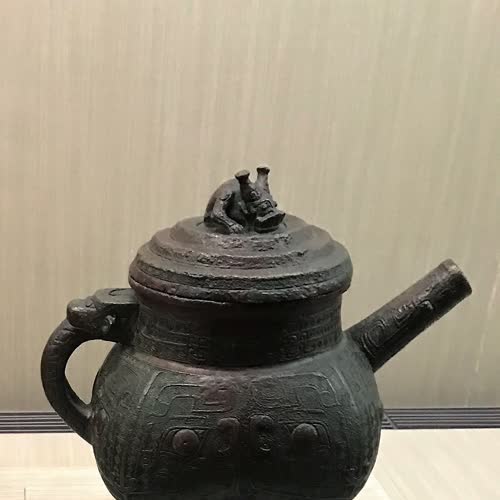 | ชื่อเรื่อง : He wine/water vessel with coiting dragon and animal mask pattern |
