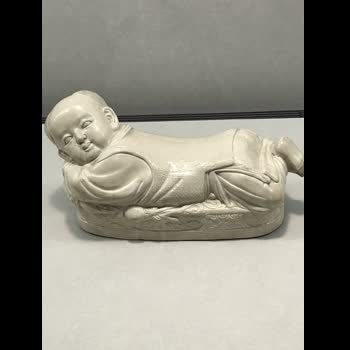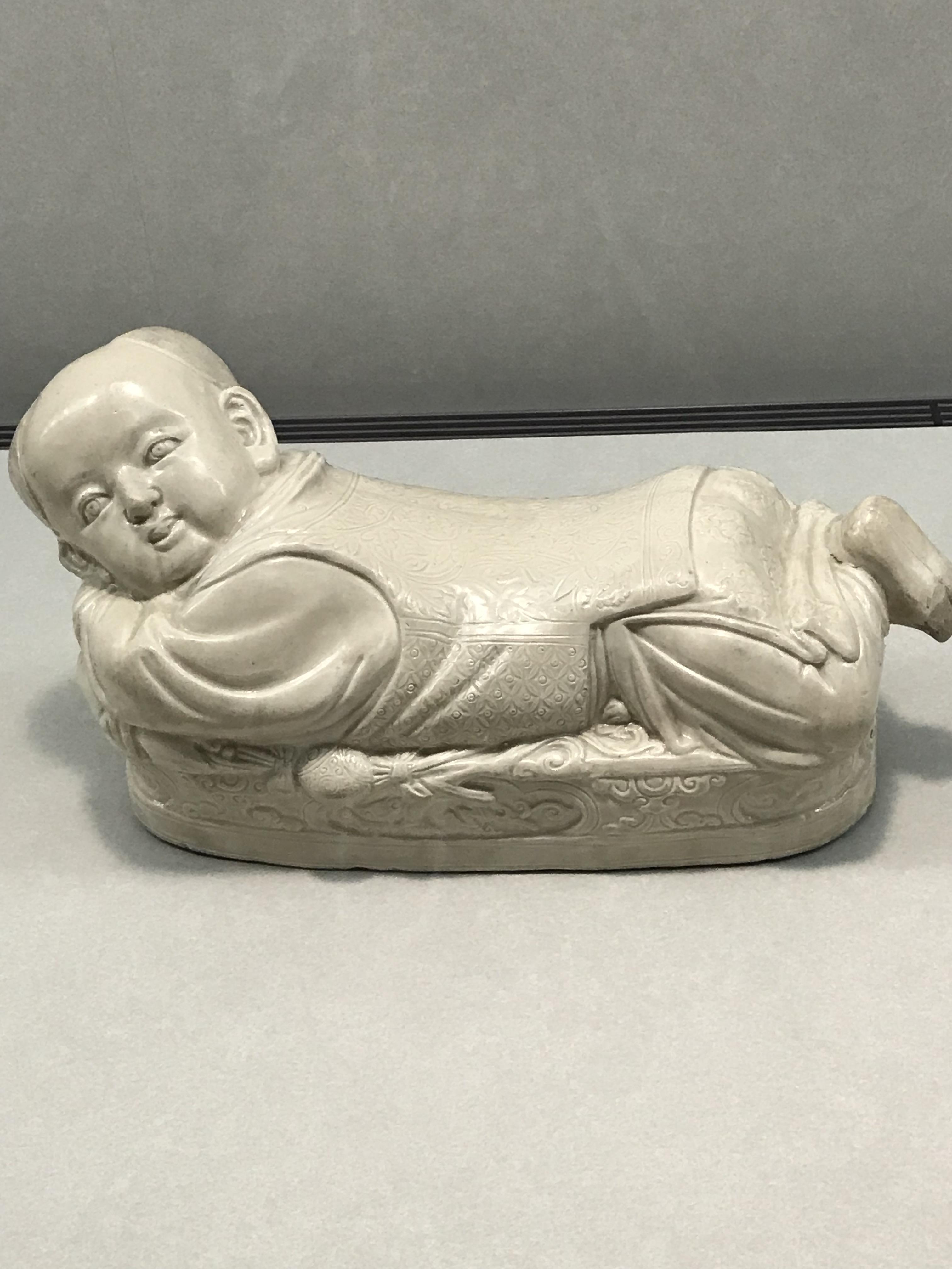 (2561). White-glazed Pillow in the Shape of a Recumbent Child,