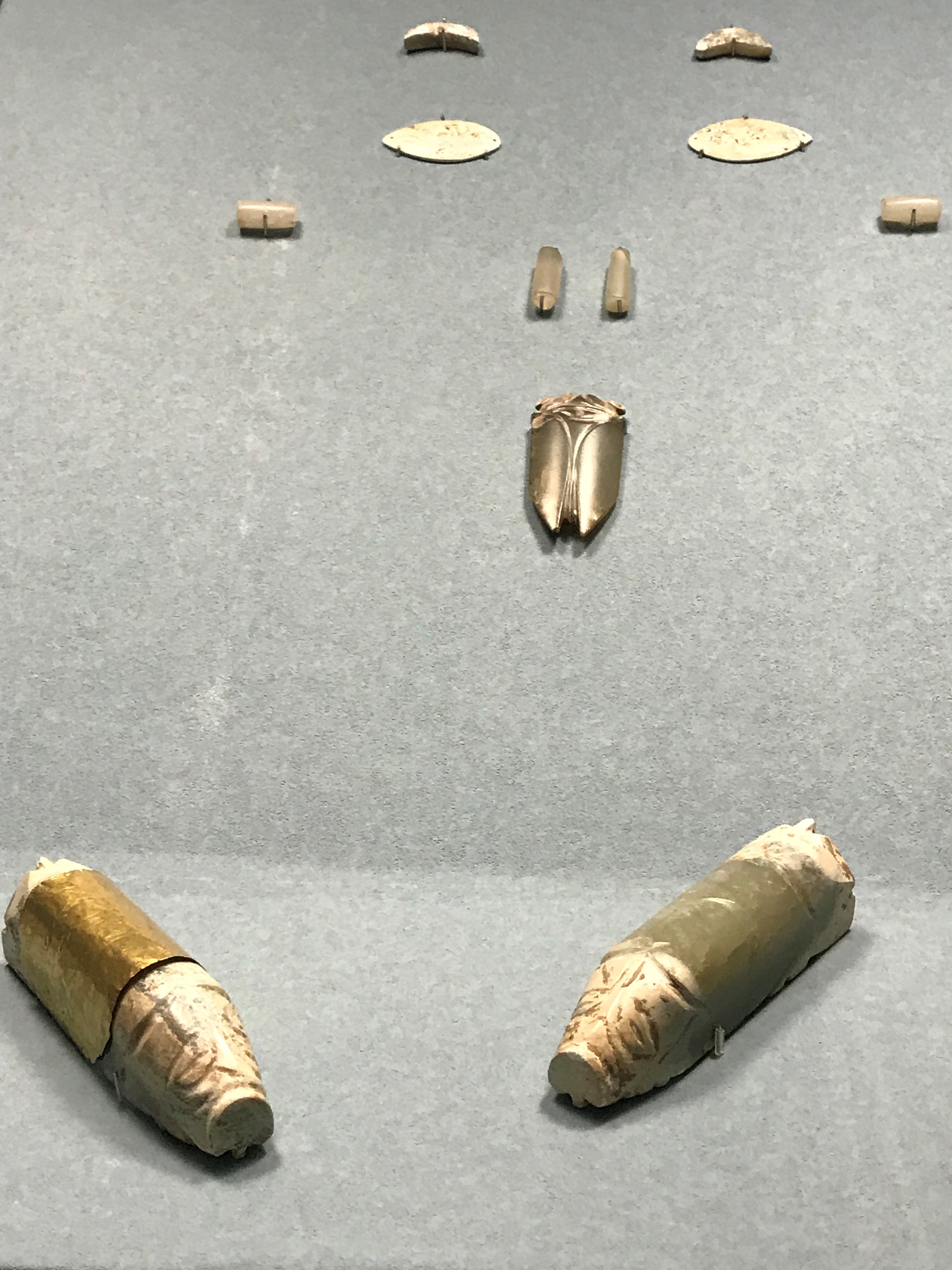 "Funerary Jades,Jade Pigs Wrapped in gold foil".