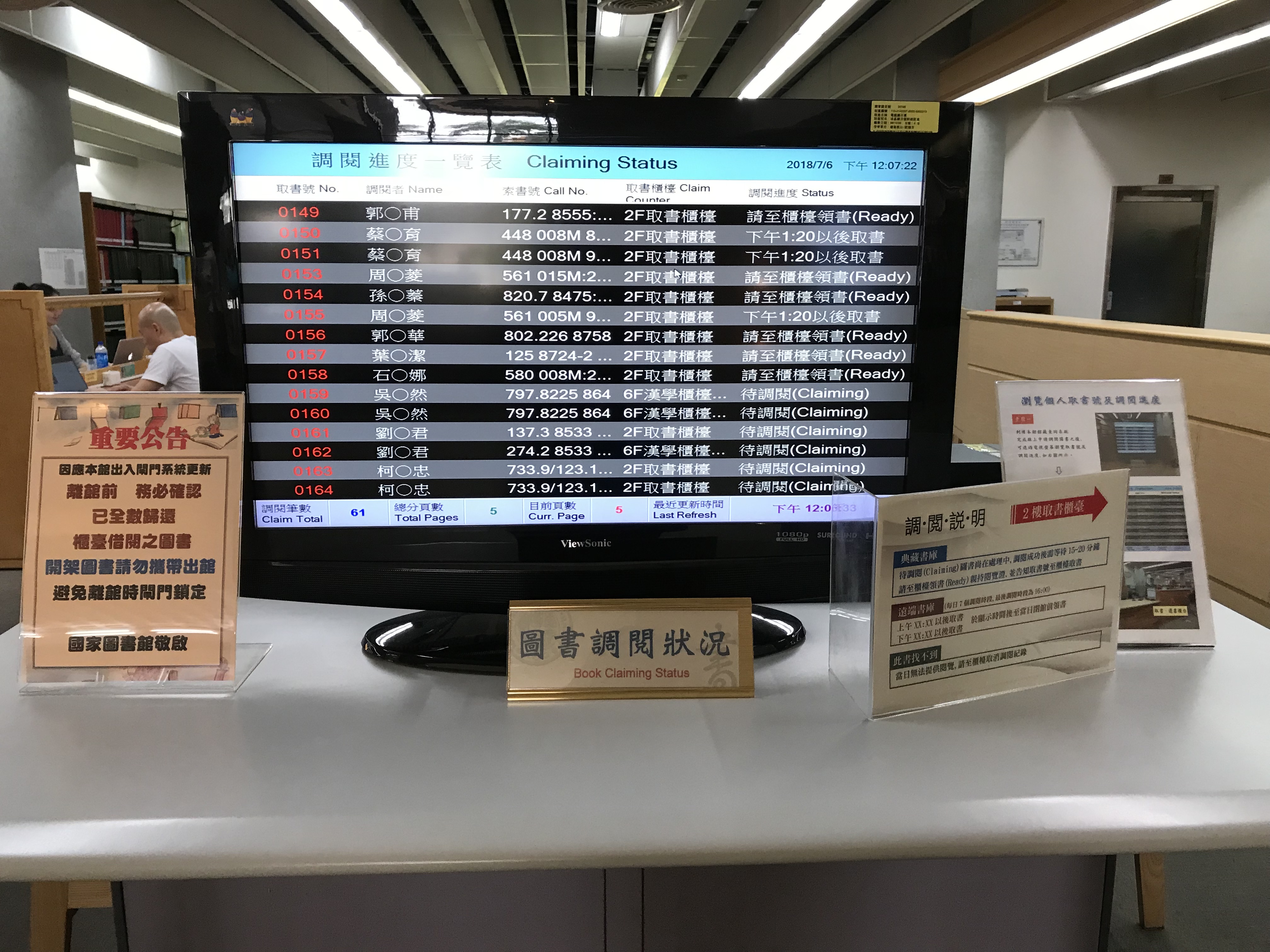 รีวิว : National Central library : Book Claiming Status