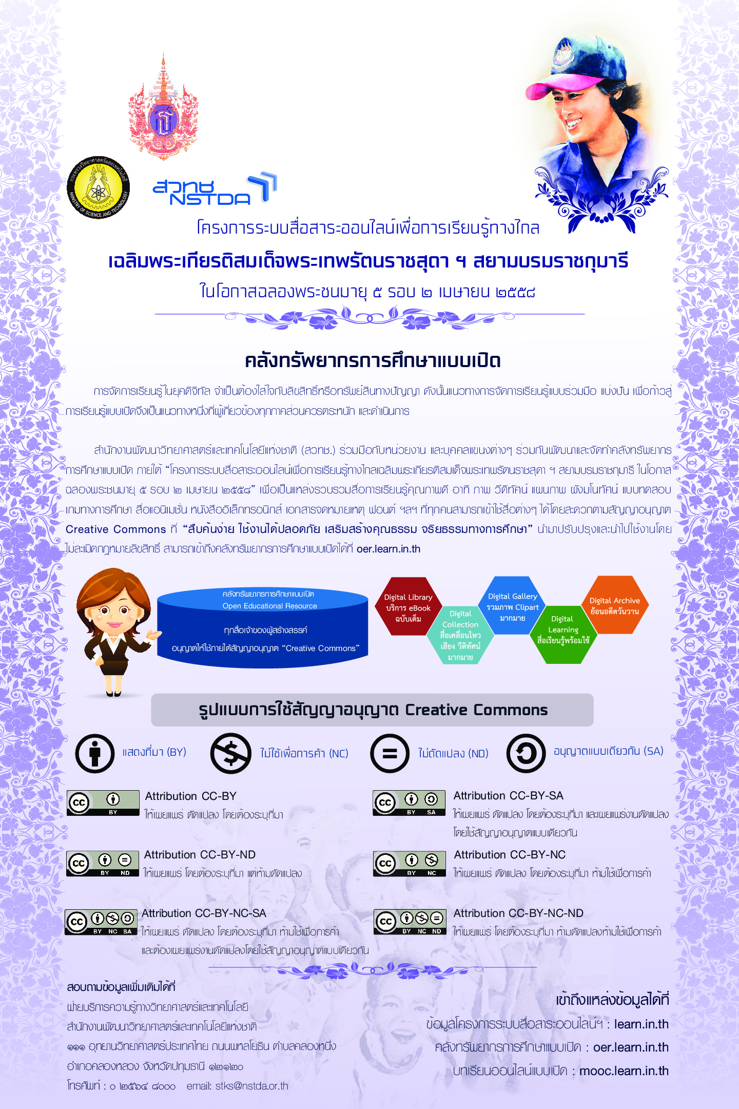 โครงการระบบสื่อสาระออนไลน์เพื่อการเรียนรู้ทางไกลฯ ได้รับใบอนุญาตภายใต้ ให้เผยแพร่-ดัดแปลง-โดยต้องระบุที่มาแต่ห้ามใช้เพื่อการค้าและต้องเผยแพร่งานดัดแปลงโดยใช้สัญญาอนุญาตชนิดเดียวกัน 3.0 Thailand.