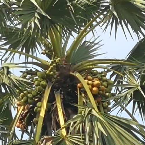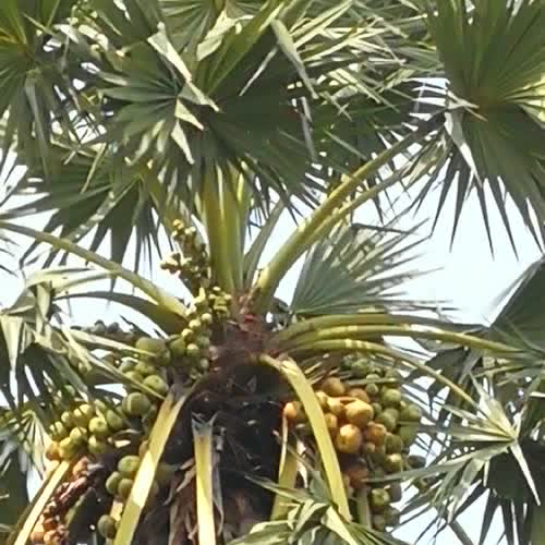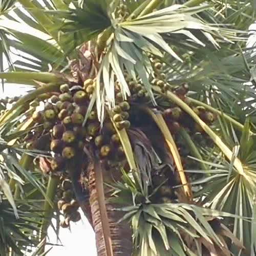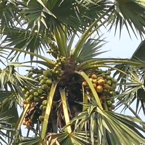 | คำอธิบาย : ลูกตาลหลายทะลายบนยอดตาล |