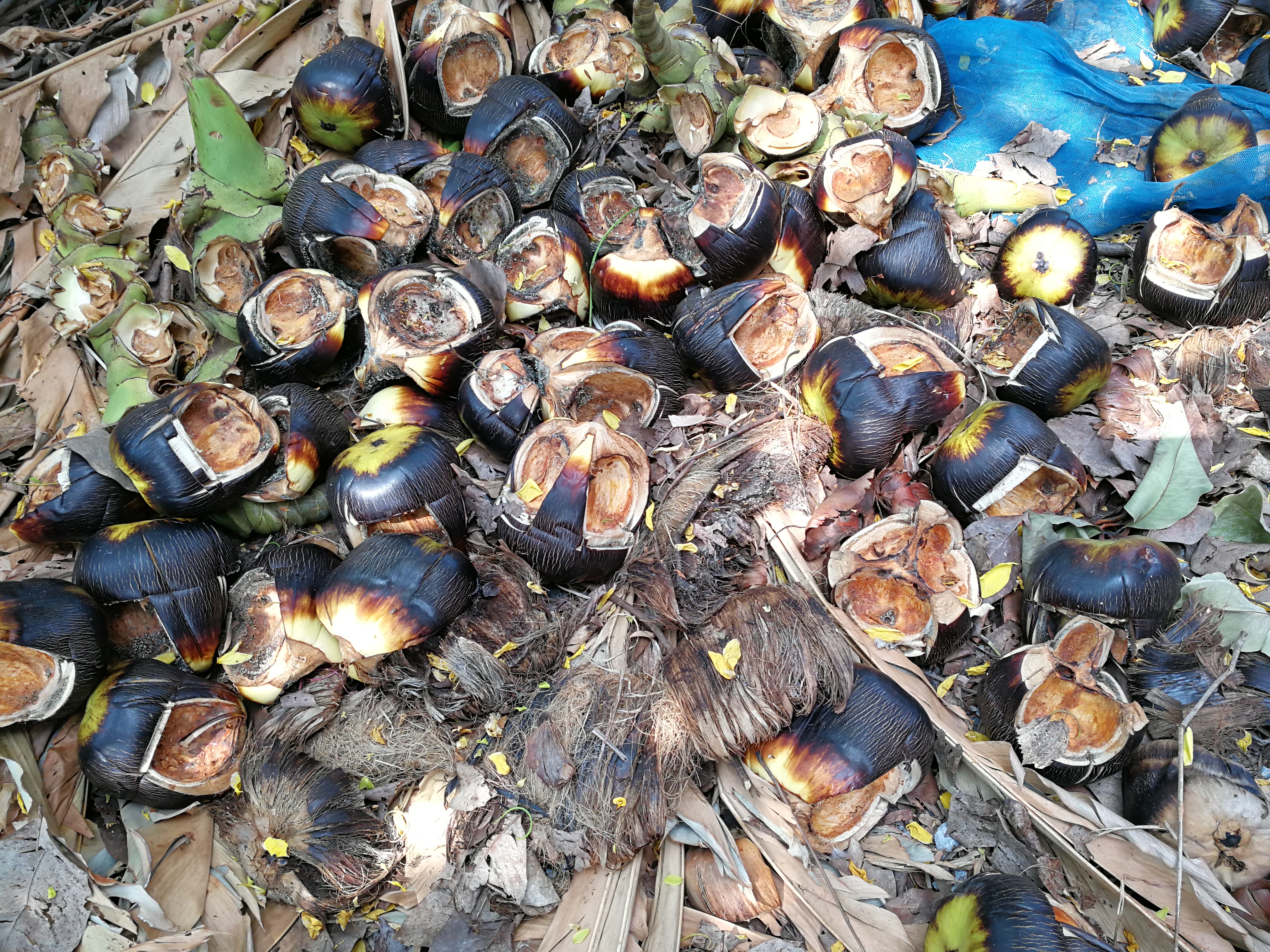 | คำอธิบาย : กองเปลือกของลูกตาลที่นำผลไปทานหรือทำขนมแล้ว |