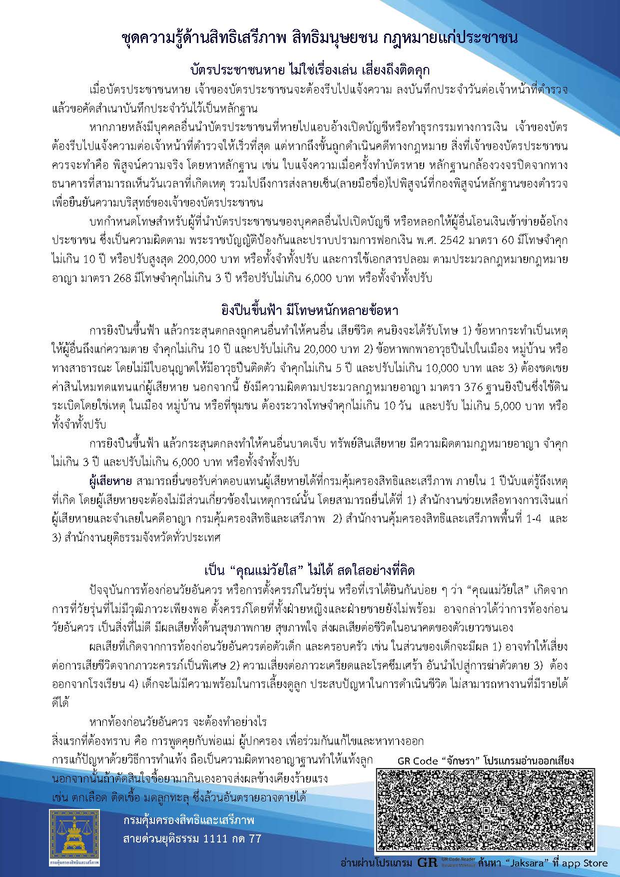 | คำสำคัญ : กรมคุ้มครองสิทธิและเสรีภาพ, บัตรประชาชน, บัตรประชาชนหาย |