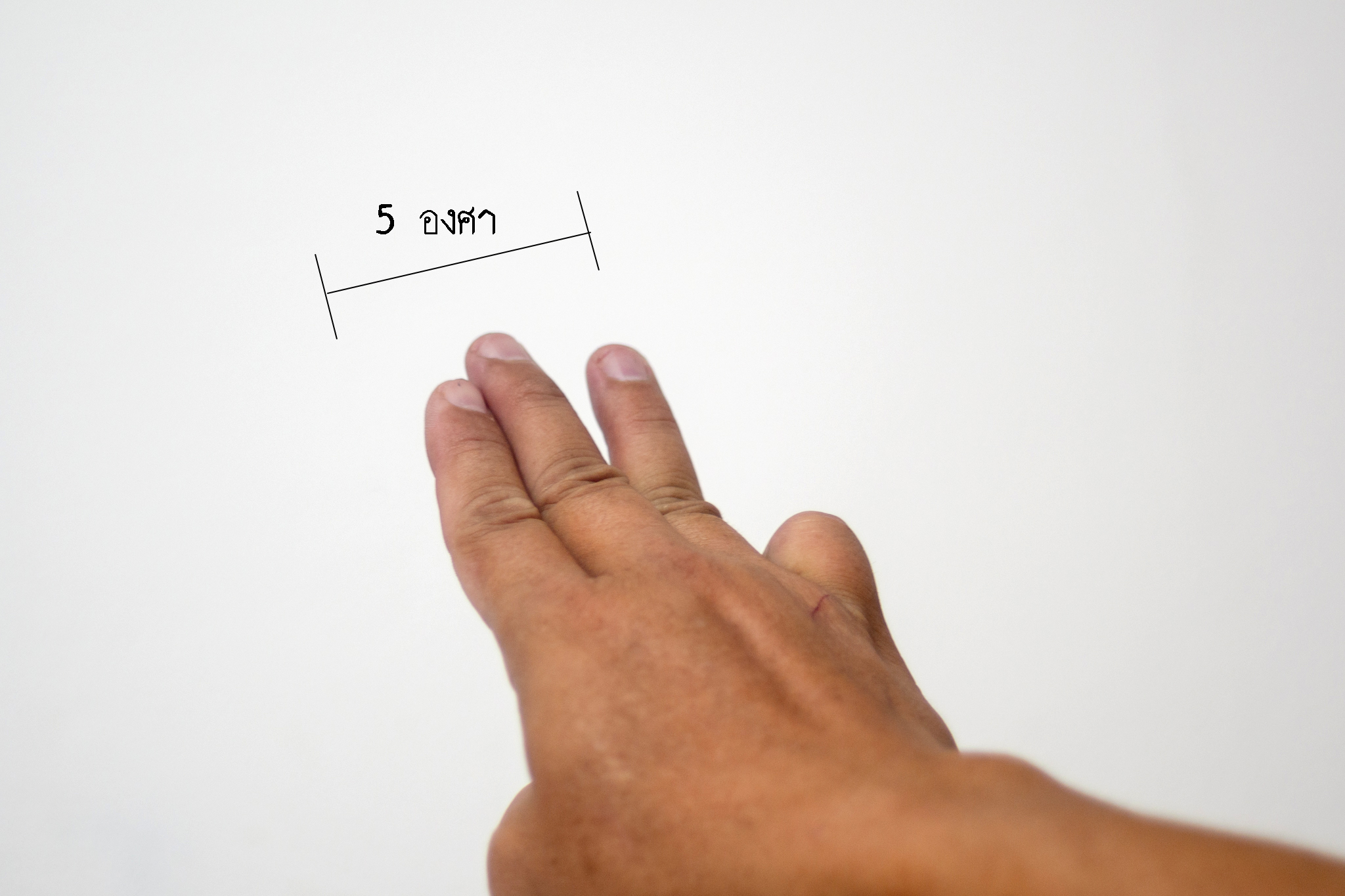 | คำอธิบาย : 5 องศา เท่ากับ นิ้วชี้ กลางและนาง |