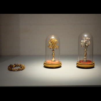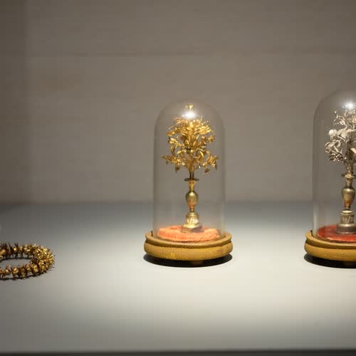 | คำสำคัญ : ดอกพิกุลทอง, พระที่นั่งปัจฉิมาภิมุข, โลหะกับงานประณีตศิลป์, ดอกพิกุลเงิน, ต้นไม้เงิน, ต้นไม้ทอง, เครื่องโลหะ |