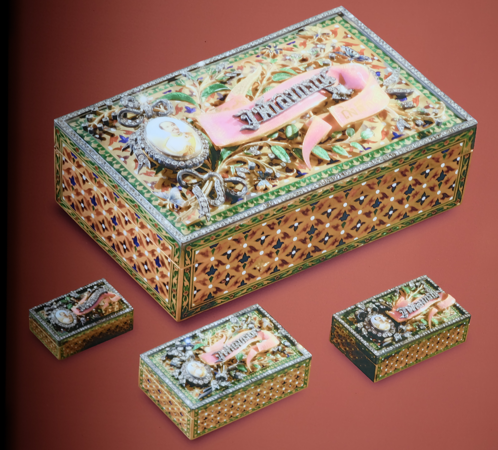 | ชื่อเรื่อง : หีบหมากทองคำลงยาประดับเพชร พร้อมลูกหีบ 3 ใบ (หีบ 30 ปี) |
