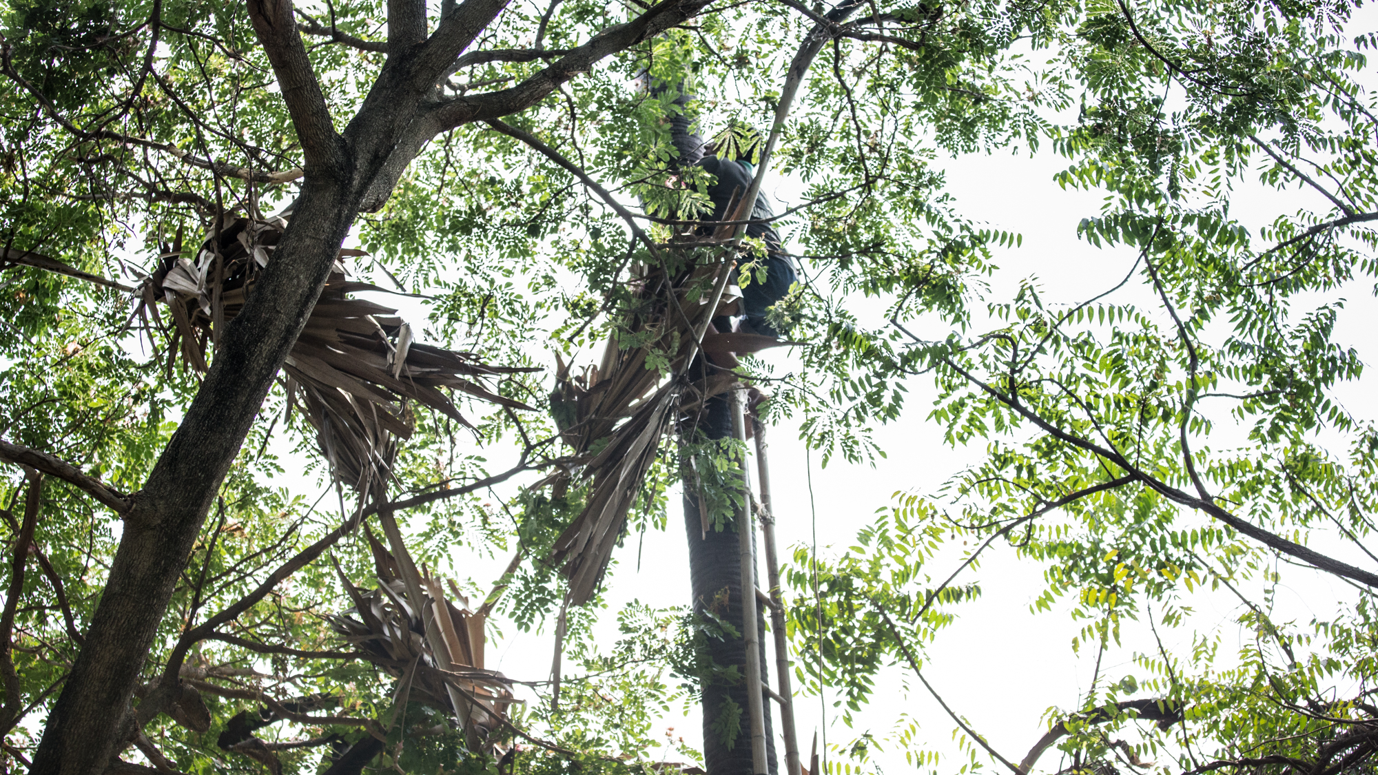 | คำอธิบาย : การปีนขึ้นไปบนยอดของต้นตาล |